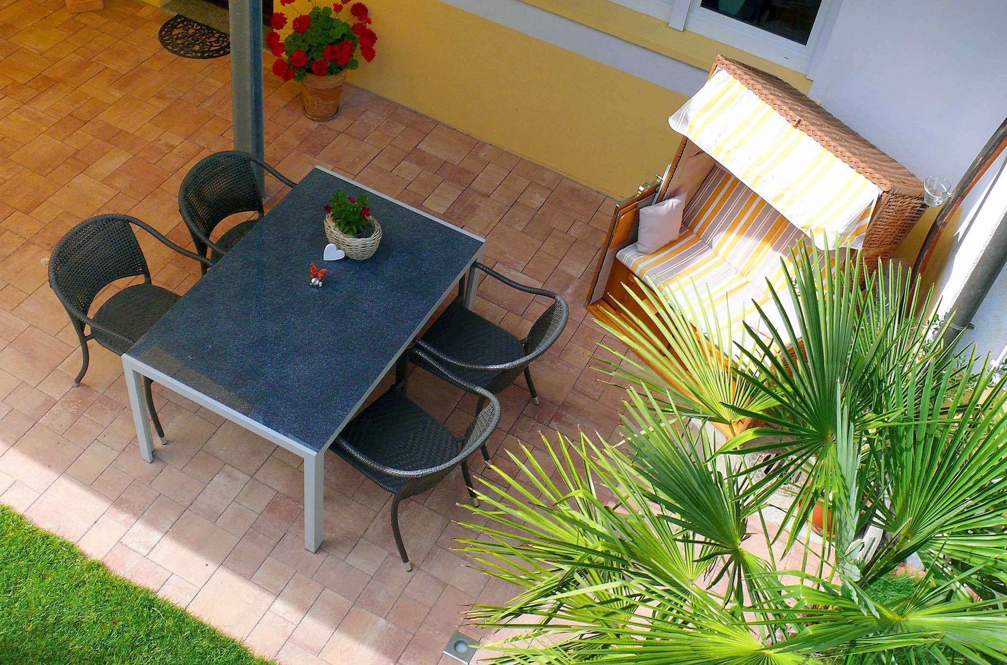Sitzplätze im Freien stehen zur Verfügung. Bettwäsche ist vorhanden.