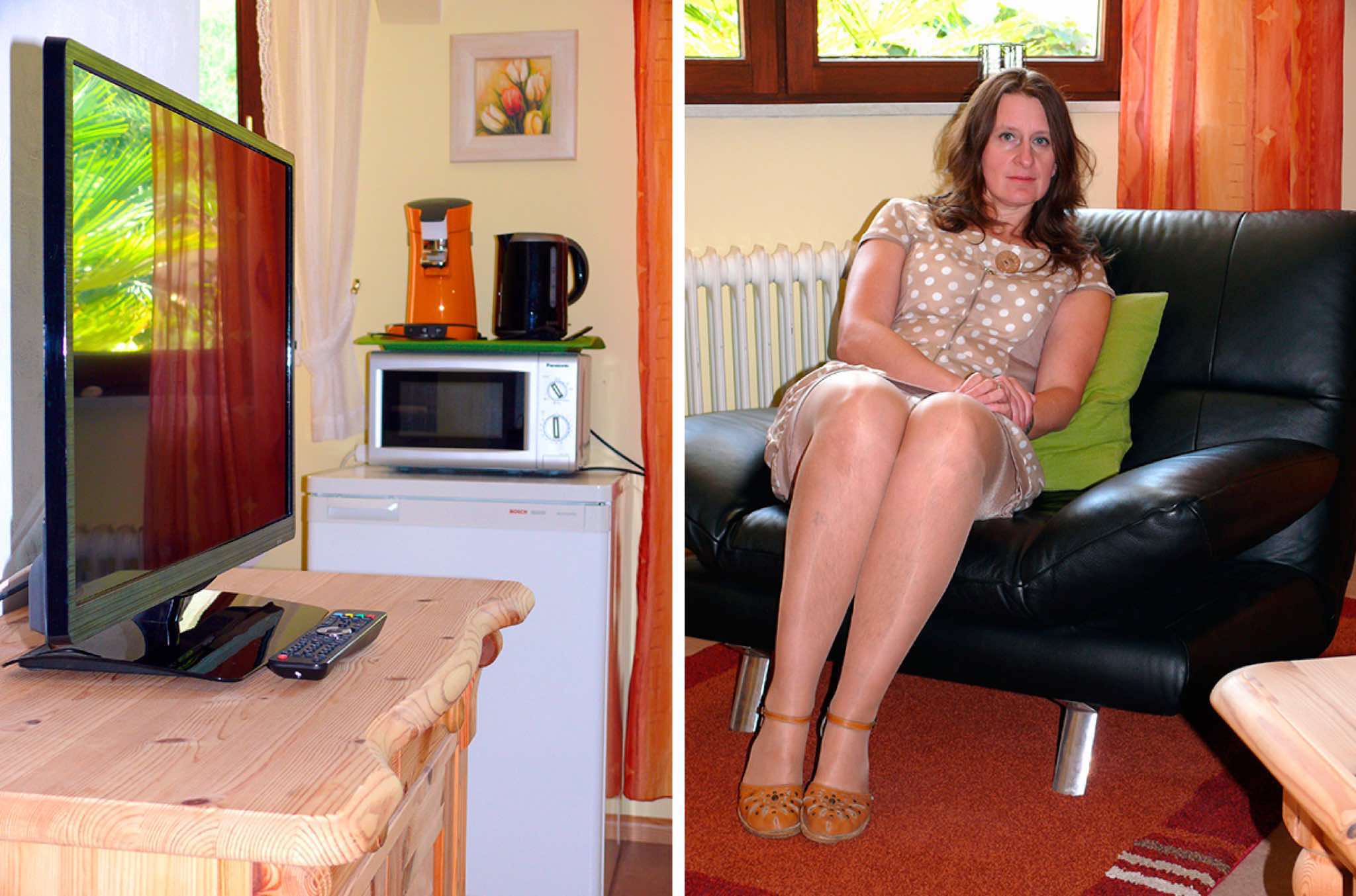 Wohnzimmer mit kleiner Küche, TV, DVD,