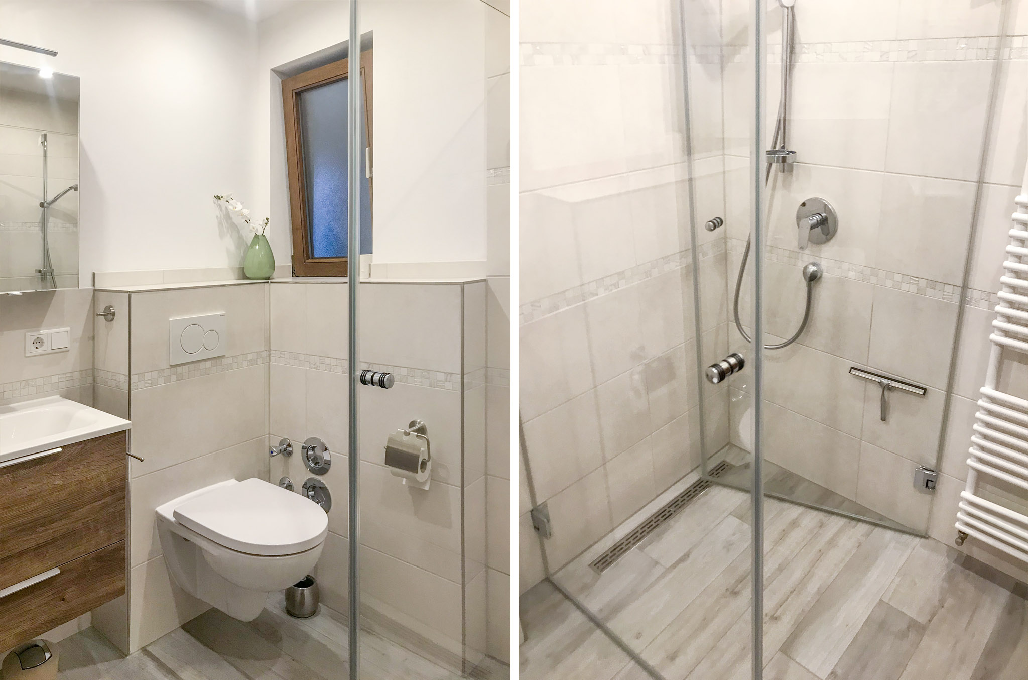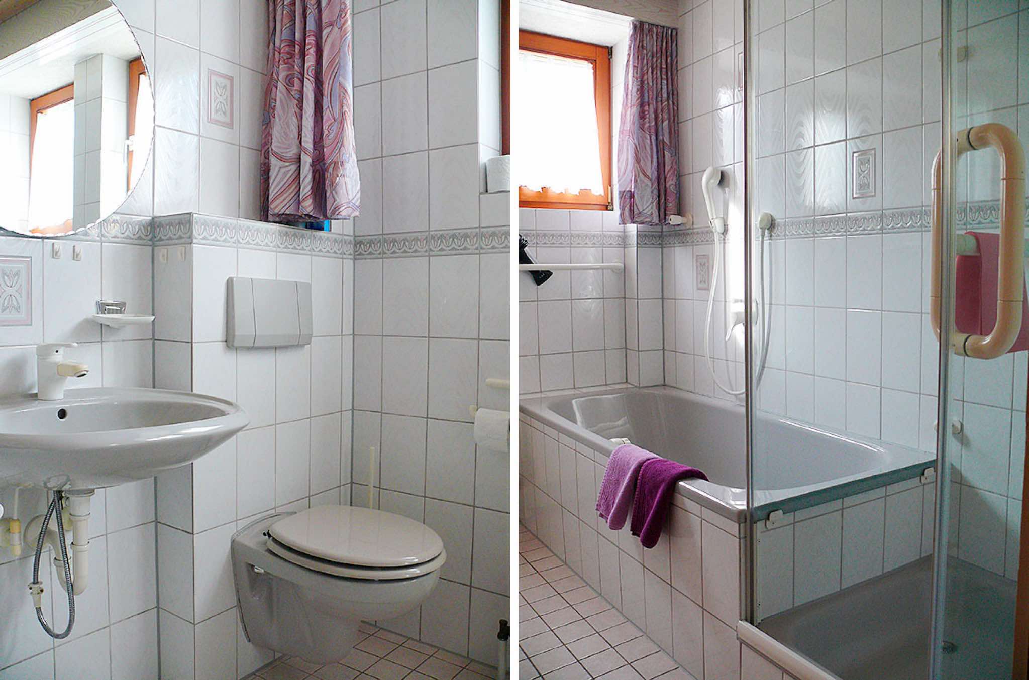Bad mit Wanne und Dusche, WC, Waschmaschine,